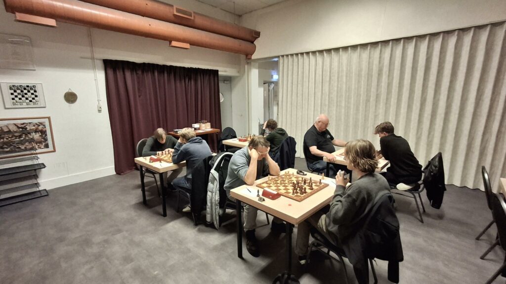 De partij tussen Mika en Jaap was als eerste klaar. In een koningsindiër werd er naar remise geschoven. Kon Mika aan de bar even lekker bijkletsen met met de andere aanwezige OZU’ers. Op de borden 1, 3 en 4 kon het intussen nog alle kanten op.