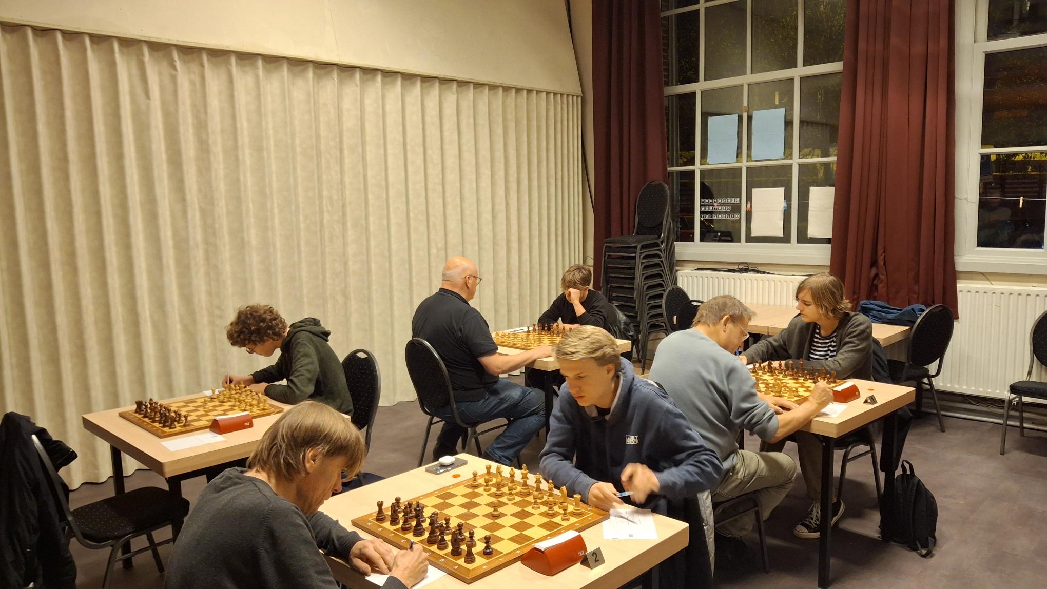 Polle en Andre speelden een Spaanse partij, waarin wit wat beter stond, maar door een misrekening in het middenspel ineens een kwaliteit moest geven, waarop Andre het direct voor gezien hield.