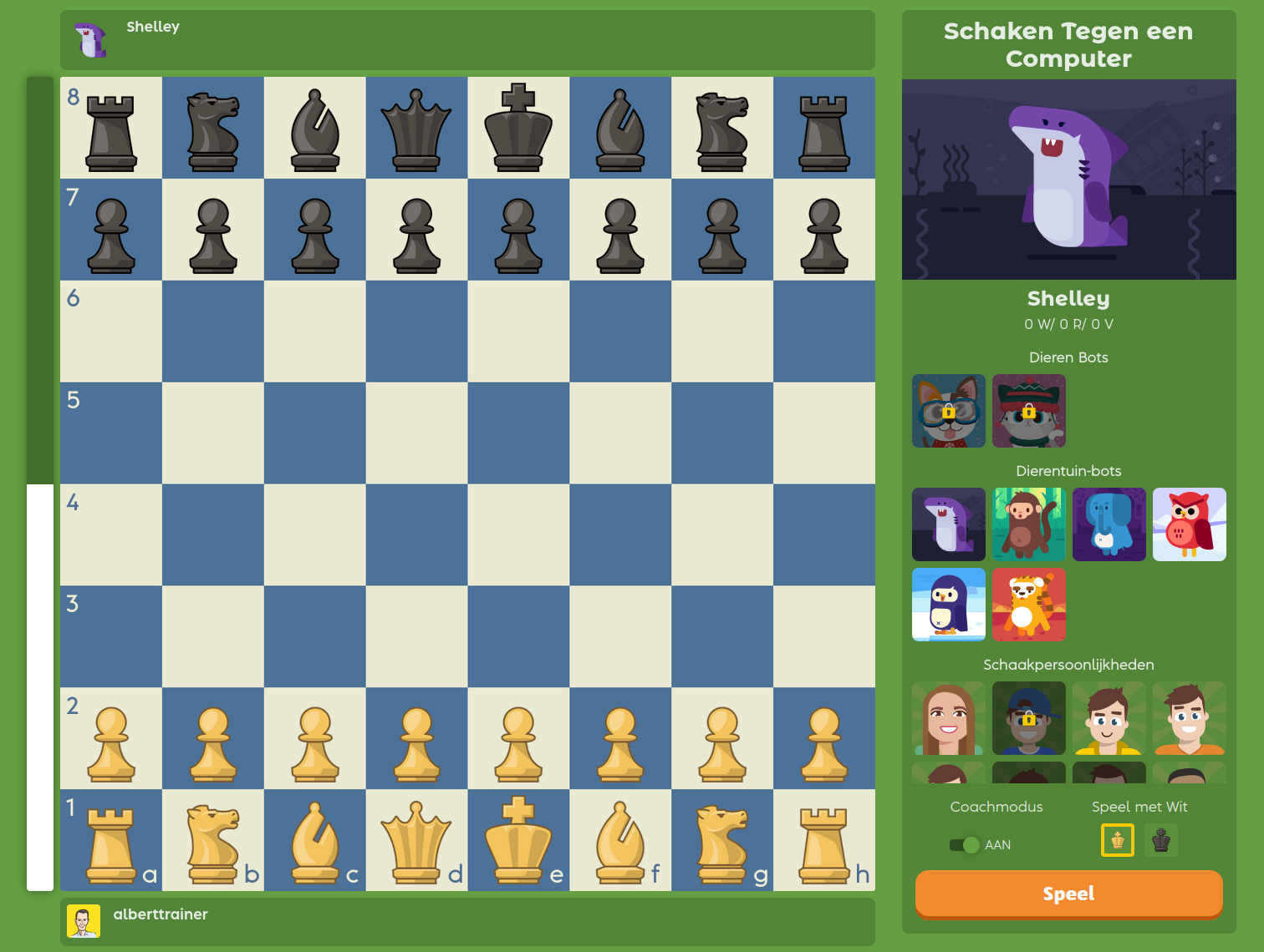 Mocht je het spelen tegen een ander kind wat spannend vinden, je kan een partijtje schaken tegen de computer met hulp (coachmodus aan)!