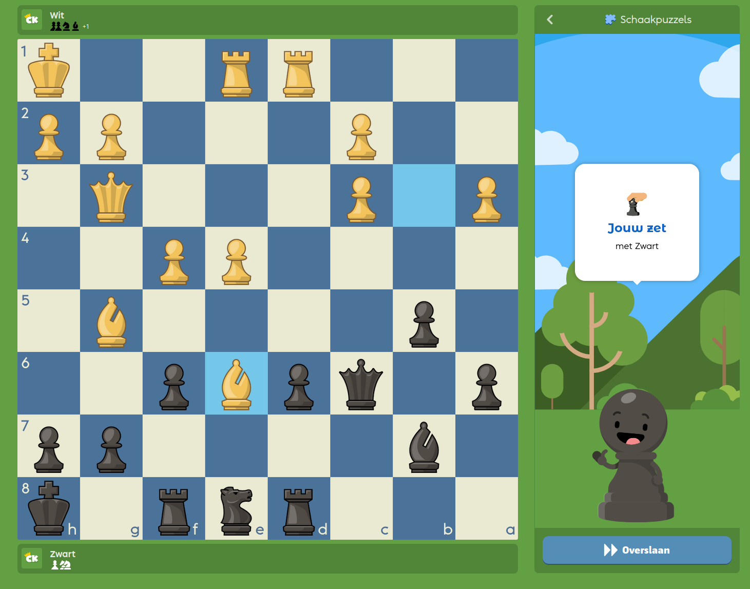 Als dat een beetje is gelukt, kan je eens gaan schaakpuzzelen: